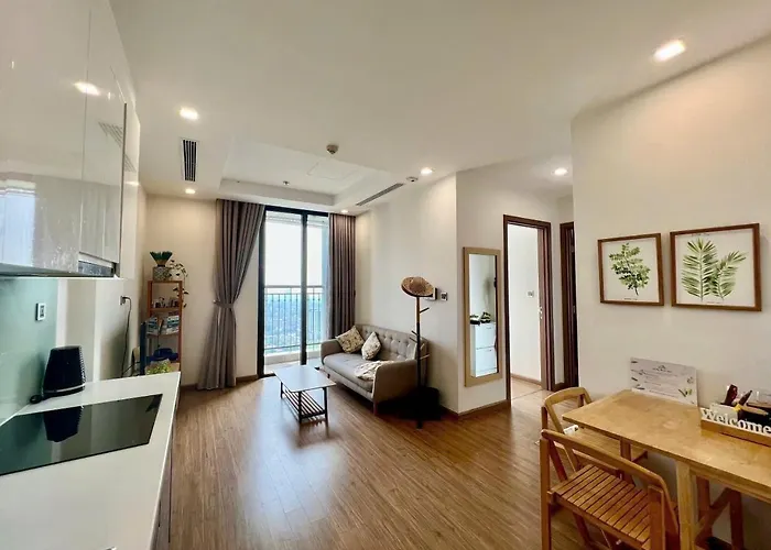 この家族向けのアパートはミーディン国立競技場から3.5キロメートル離れた所で、Doi dien chung cu HH2 Bac Ha - 48 To Huuバス停少し離れたです。 一柱寺もLuxury 2Bedroom Near Keangnam And My Dinh In Vinhomes Green Bayアパートから自動車で約20分の場所にあります。
